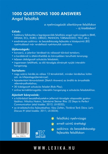 A könyv a hazai nyelvkönyvkiadásban már-már klasszikusnak számÃtó 1000 Questions 1000 Answers sorozat felsÅ‘fokú kötetének negyedik, felújÃtott és bÅ‘vÃtett kiadása.
