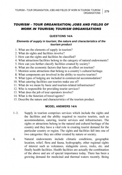 A kötet 18 témát dolgoz fel. Minden téma kérdésekkel kezdÅ‘dik, melyekre modellválaszok és társalgási vázlatok adnak magyarázatot. A szószedetben található idegenforgalmi szakszavak és kifejezések nem csak a nyelvvizsgára készülÅ‘k, hanem a turizmus és vendéglátás területén dolgozók számára is rendkÃvül hasznosak.