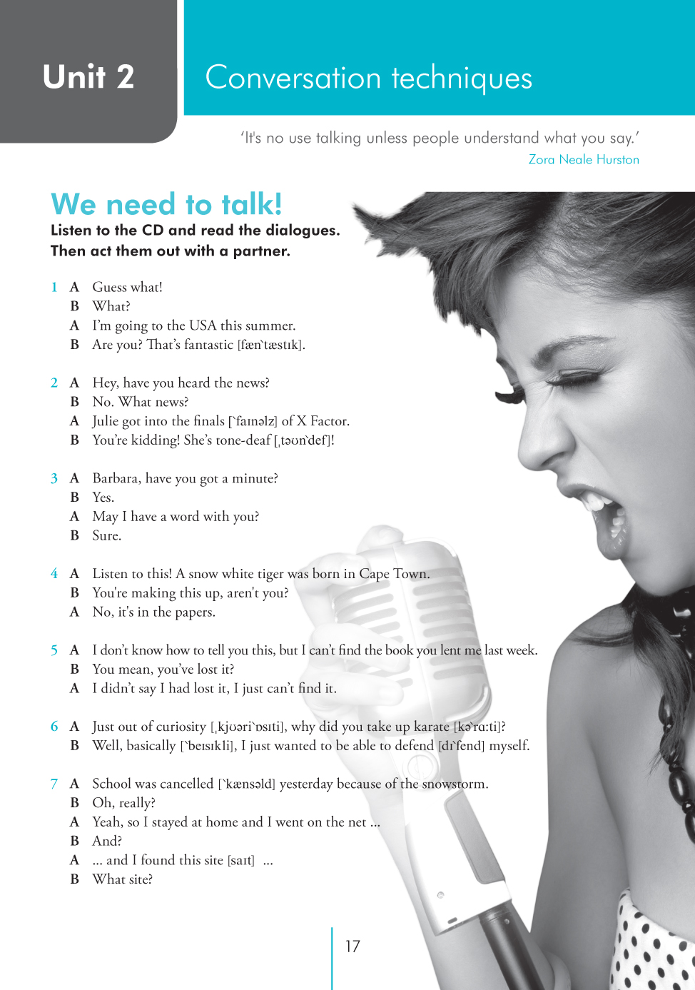 A legelemibb nyelvhasználói igény a társas szóbeli kommunikáció fejlesztése. A magán- és üzleti élet, a közép- és felsÅ‘fokú nyelvvizsgák, a közép- és emelt szintű érettségi vizsga szóbeli részének szituációs feladataira készÃt fel.