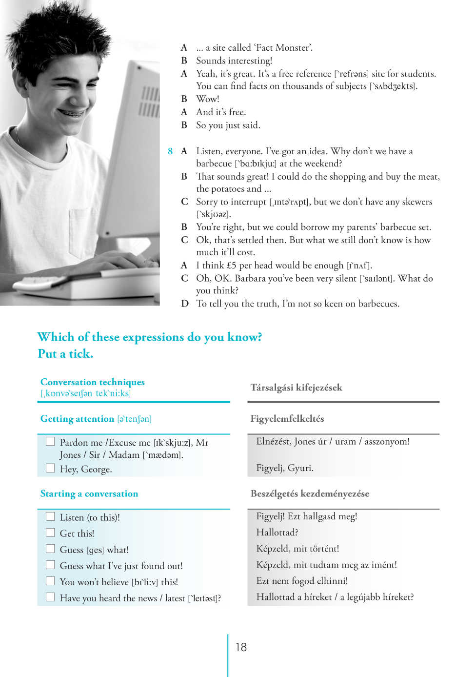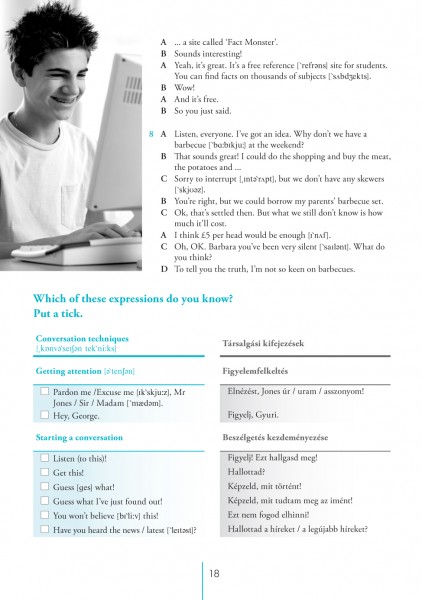 • szójegyzék az adott fejezetben elÅ‘forduló kifejezésekbÅ‘l, magyar jelentéssel és fonetikus átÃrásban.
