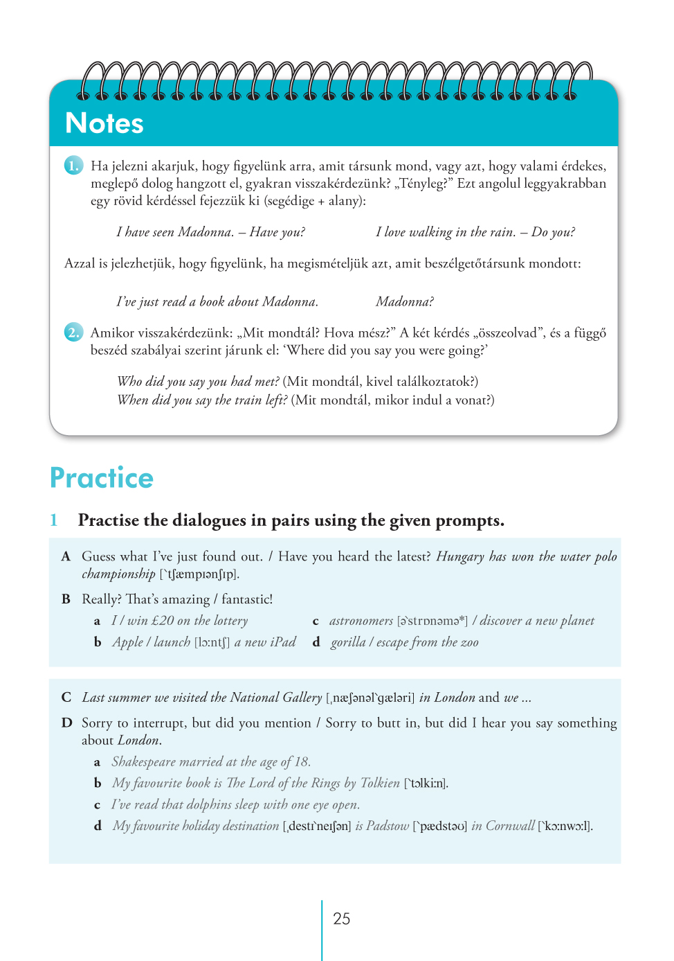 • rövid megjegyzések a legfontosabb aktuális nyelvtani tudnivalókkal.