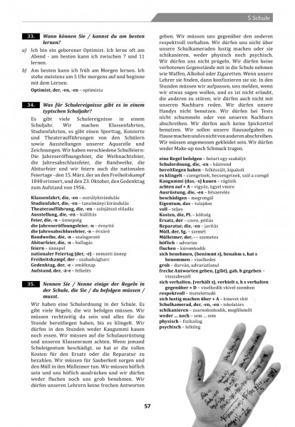 • fejezetenként különböző témájú kérdések egy vagy több mintaválasszal és szójegyzékkel;