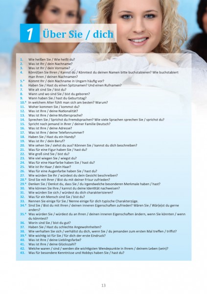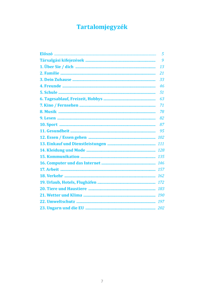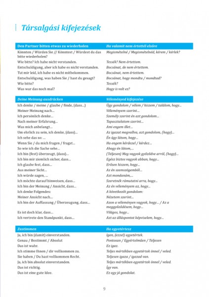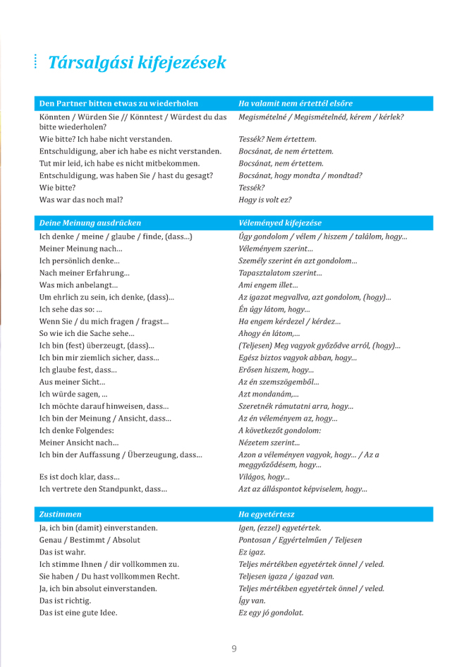 • bevezetés a német társalgásba a különbözõ beszédszándékok áttekintésével;