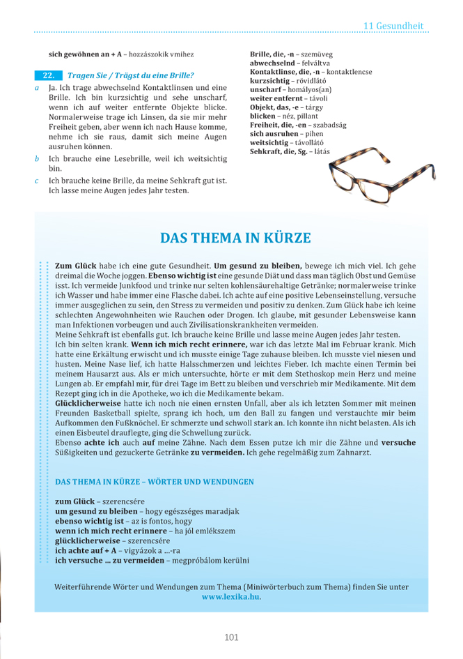 • tömör összefoglalás valamennyi fejezet témájáról (Thema in Kürze) – emlékezetbõl történõ megtanulásra, valamint arra az esetre, ha a tananyag alapos feldolgozására nem volt lehetõségünk.