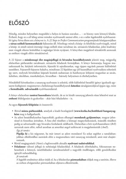 A 22 Steps to Perfect Communication korszerű módszerekkel, élményszerűen vezet be az angol nyelvű társas ill. csoportos szóbeli kommunikációba.