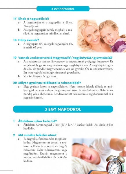 • kérdés–válasz formájában feldolgozza az államilag elismert alapfokú szóbeli nyelvvizsgák valamennyi témakörét;