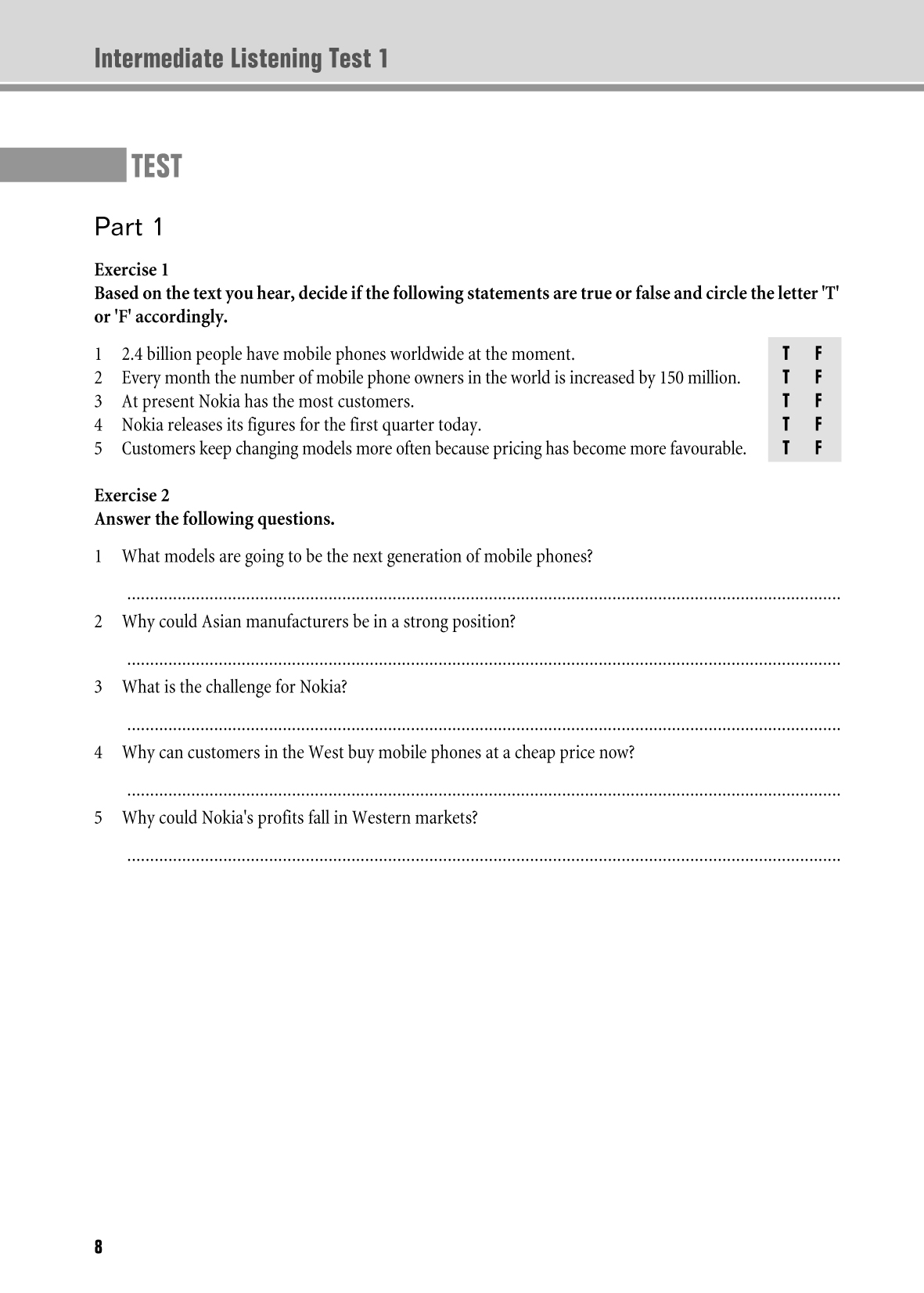 A letölthetÅ‘ hanganyaggall rendelkezÅ‘ tesztkönyv rendkÃvül hatékonyan segÃti a gazdasági szaknyelvi vizsgák hallás utáni szövegértés tesztjeire felkészülni vágyókat az önálló gyakorlásban, az egyéni igények, saját ritmus szerinti kész-ségfejlesztésben, vagyis az eredményes nyelvtanulásban.