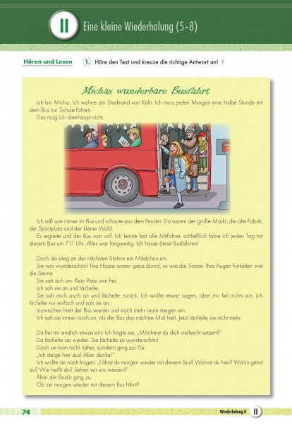 A Der Neue Schulbus 4 kommunikáció központú tankönyv. Olvasmányai a mindennapi élet legfontosabb mozzanatairól szólnak, azokat a tanulók korának és érdeklÅ‘désének megfelelÅ‘en tárgyalják. Témakörei jól felhasználhatók a mindennapi társalgásban, alkalmasak korábbi lexikai anyagok felfrissÃtésére, valamint új lexikai ismeretek elsajátÃtására.