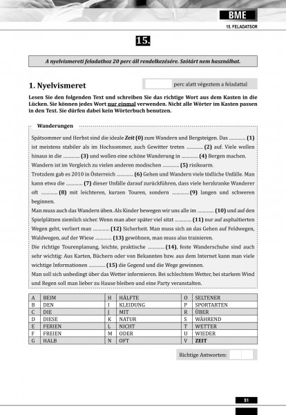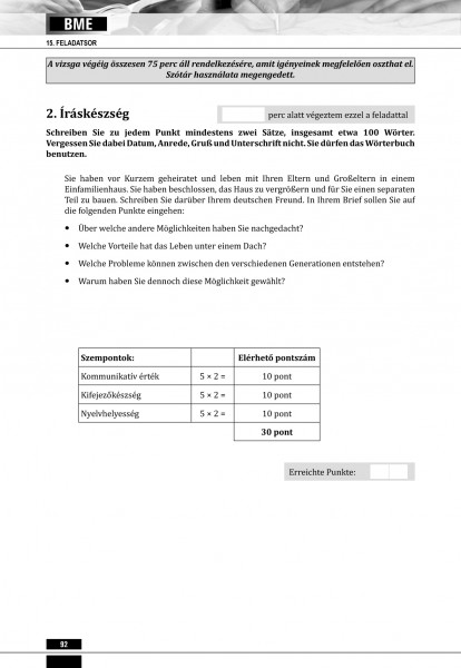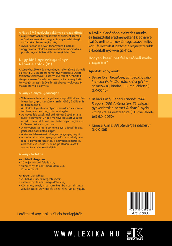 SzövegértéstÅ‘l a mintalevélig…. Biztos kulcs a BME tÃpusú alapfokú német nyelvvizsgához, akár önálló használattal. A tananyag hatékonyságát a segÃtségével letett sikeres nyelvvizsgák magas aránya bizonyÃtja. CD melléklettel.