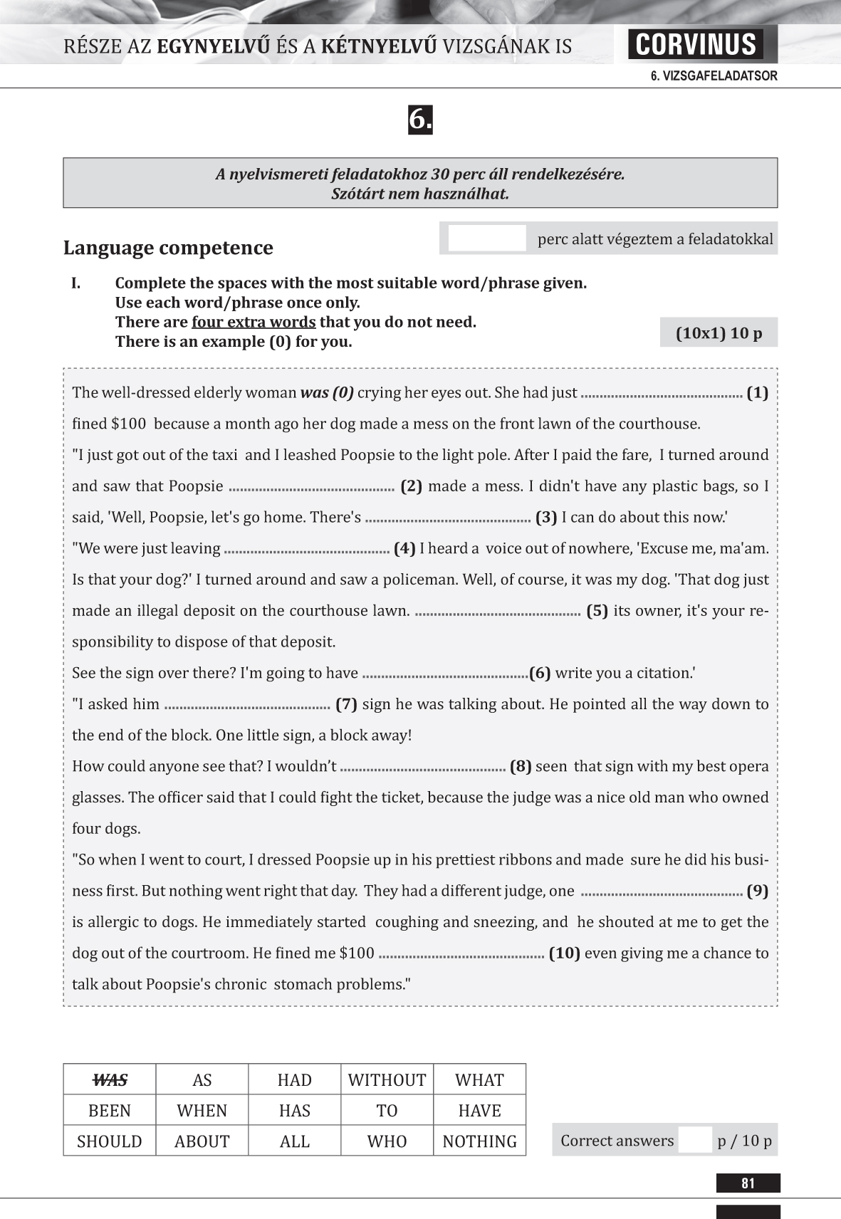 • a feladatok pontosan olyan sorrendben és formátumban jelennek meg, mint a vizsgán.