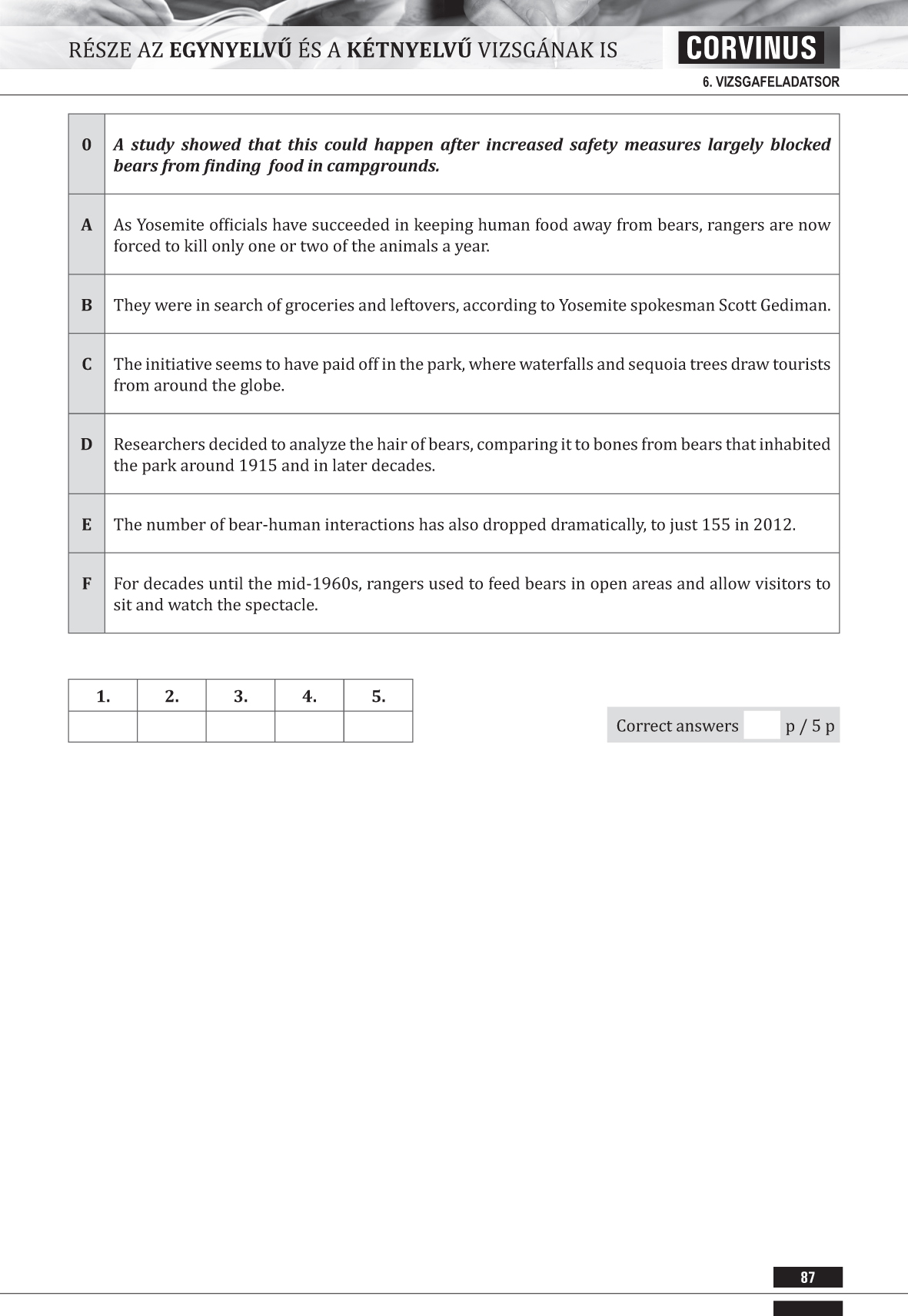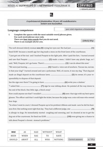 A könyv hatékony és eredményes felkészülést biztosÃt angol nyelvbÅ‘l a középfokú Corvinus Ãltalános Nyelvvizsgára. Az itt található feladatokat a szerzÅ‘k vizsgára készülÅ‘ nyelvtanulókkal szerzett tapasztalataik alapján fejlesztették ki; a tananyag hatékonyságát a segÃtségével letett eredményes nyelvvizsgák magas aránya is igazolja.