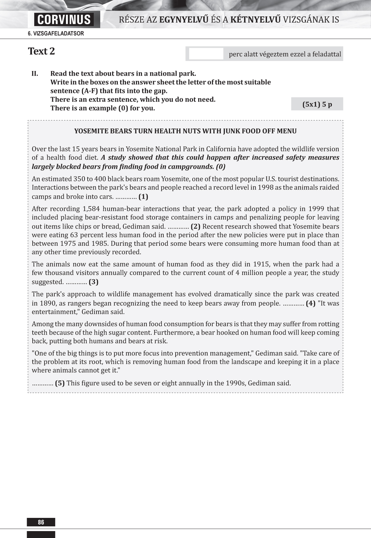 • az egyes feladatok melletti idÅ‘mérÅ‘ sávban a tanuló feljegyezheti, hogy mennyi idÅ‘ alatt végzett az adott feladattal, ami hatékonyan segÃti a jó idÅ‘beosztást a vizsga során.
