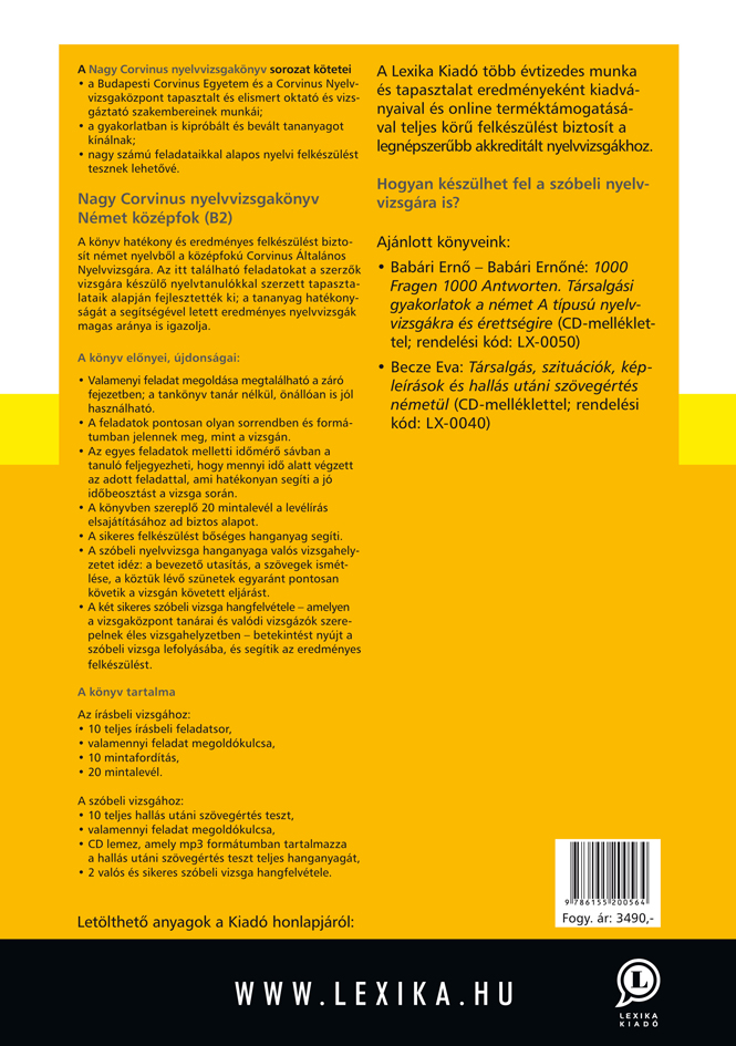 • Babári Ernõ – Babári Ernõné: 1000 Fragen 1000 Antworten. Társalgási gyakorlatok a német A tÃpusú nyelvvizsgákra és érettségire (CD-melléklettel; rendelési kód: LX-0050)