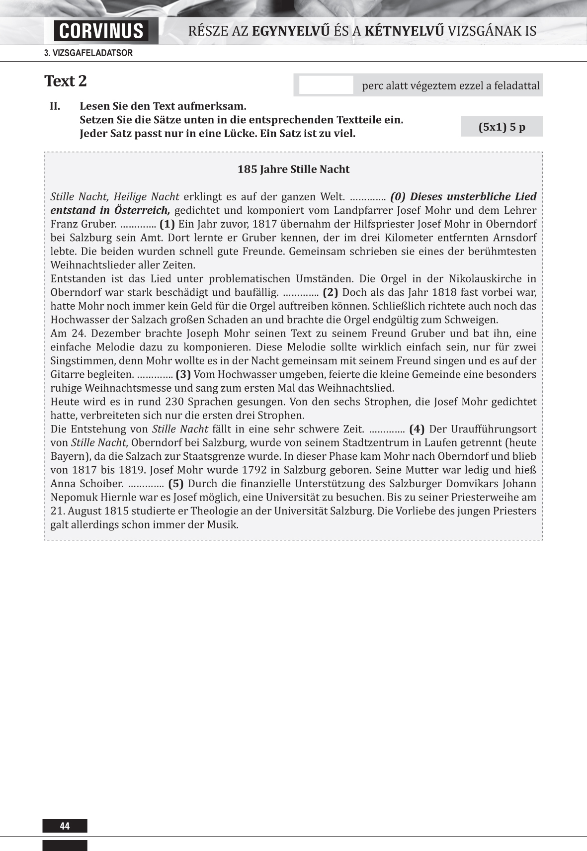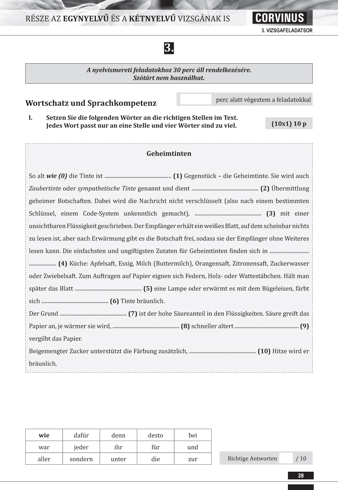 • az egyes feladatok melletti idõmérõ sávban a tanuló feljegyezheti, hogy mennyi idõ alatt végzett az adott feladattal, ami hatékonyan segÃti a jó idõbeosztást a vizsga során.