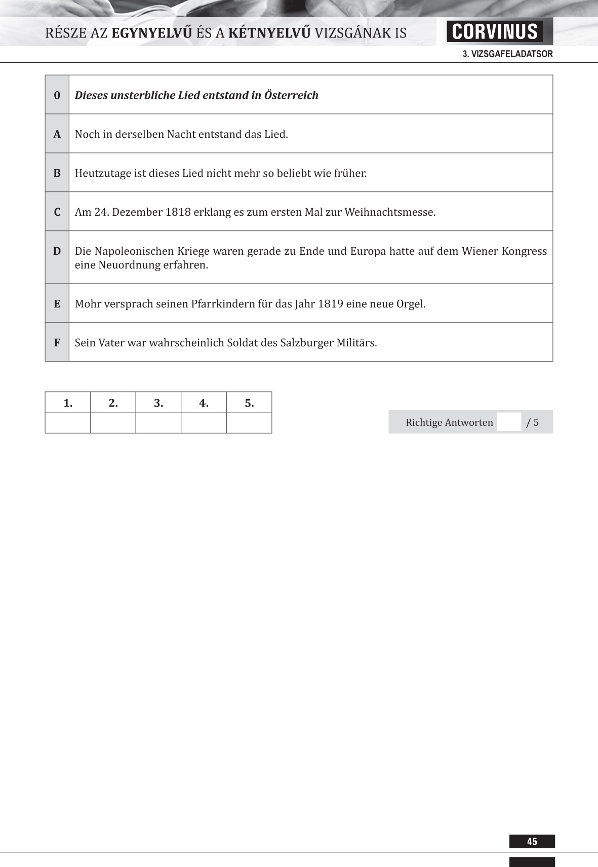 • CD lemez, amely mp3 formátumban tartalmazza a hallás utáni szövegértés teszt teljes hanganyagát,