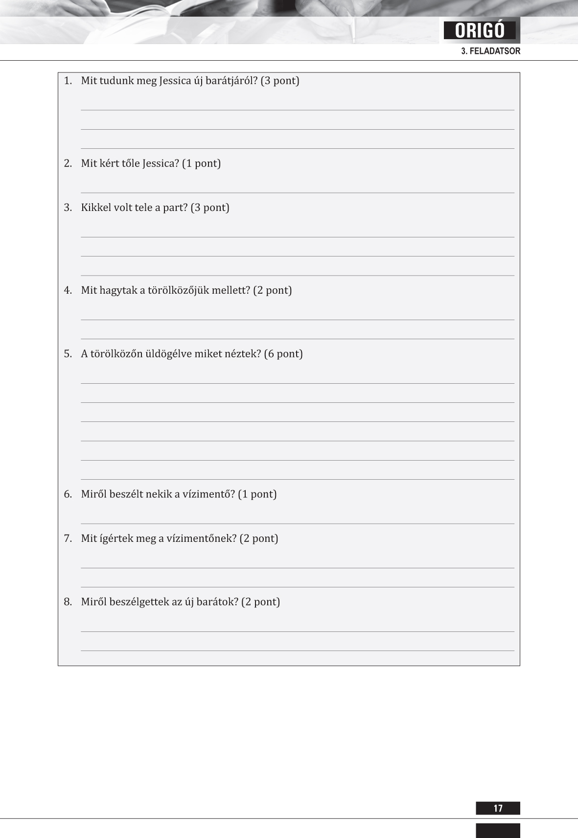 • az egyes feladatok melletti idÅ‘mérÅ‘ sávban a tanuló feljegyezheti, hogy mennyi idÅ‘ alatt végzett az adott feladatrésszel, ami hatékonyan segÃti a jó idÅ‘beosztást a vizsga során.