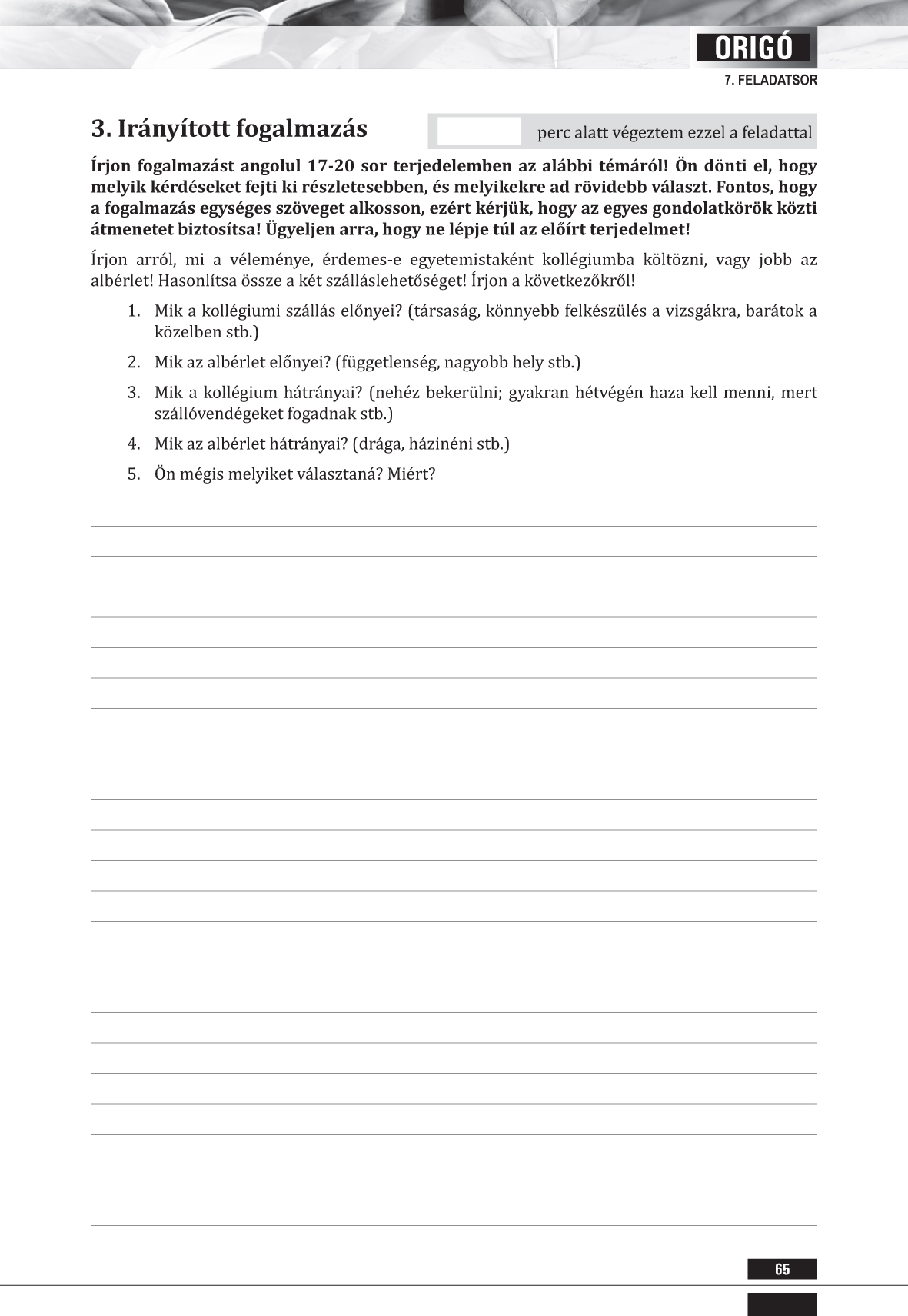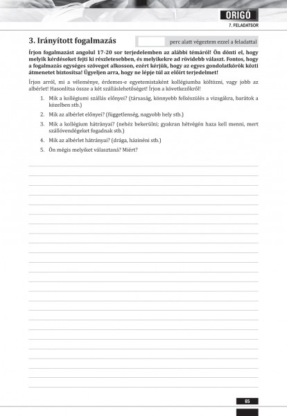 • az egyes feladatok melletti idÅ‘mérÅ‘ sávban a tanuló feljegyezheti, hogy mennyi idÅ‘ alatt végzett az adott feladatrésszel, ami hatékonyan segÃti a jó idÅ‘beosztást a vizsga során.