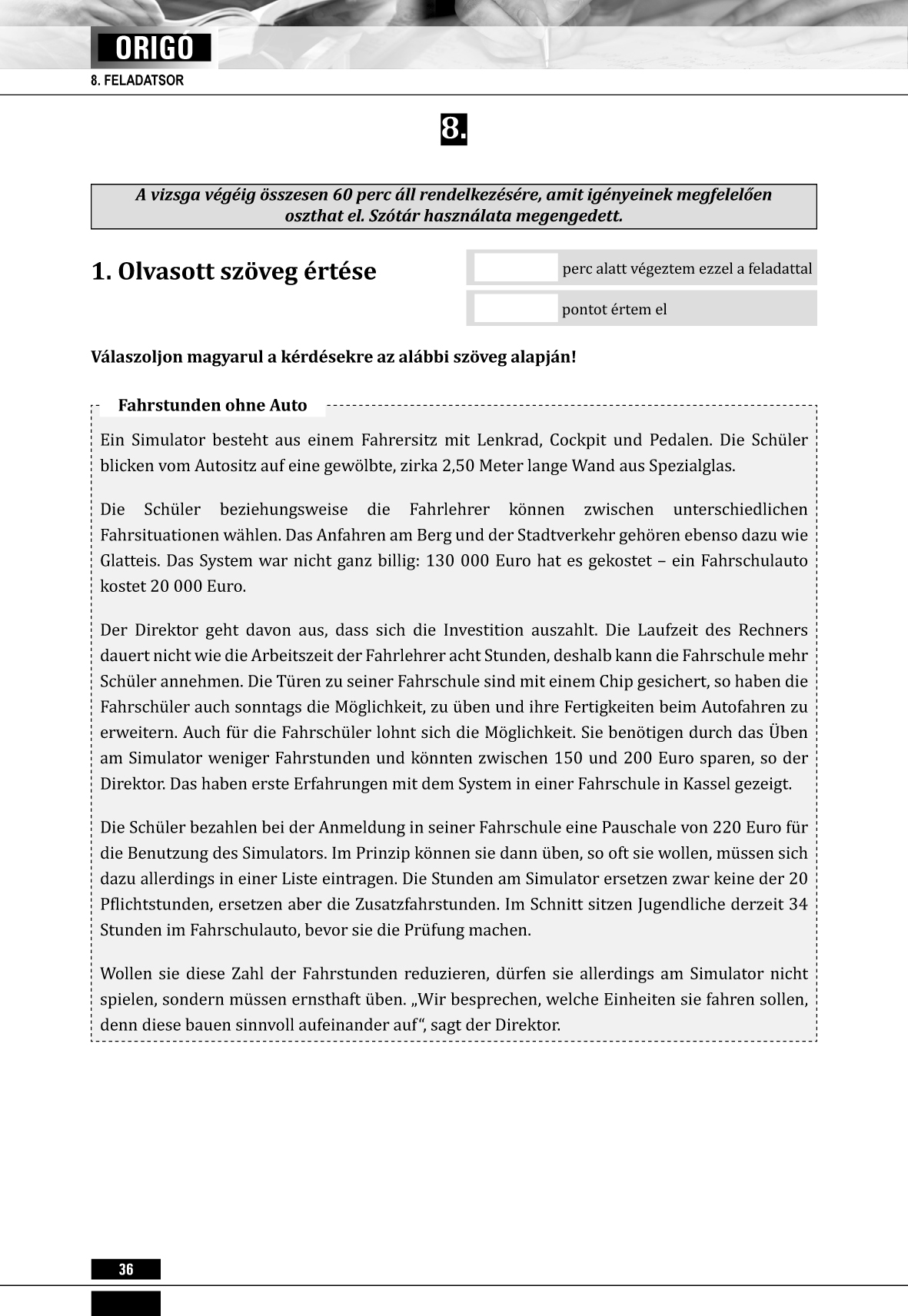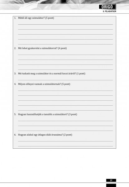 • az egyes feladatok melletti idÅ‘mérÅ‘ sávban a tanuló feljegyezheti, hogy mennyi idÅ‘ alatt végzett az adott feladatrésszel, ami hatékonyan segÃti a jó idÅ‘beosztást a vizsga során.