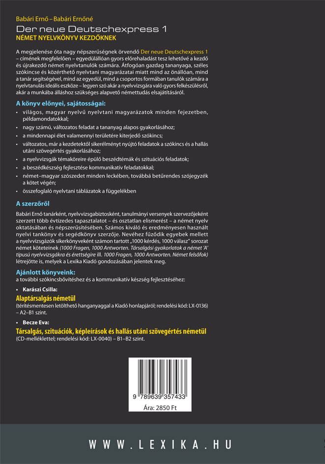 Kurzuskönyv kezdÅ‘ és álkezdÅ‘ nyelvtanulóknak. FelépÃtése lehetÅ‘vé teszi a csoportos, illetve az önálló, tanári segÃtség nélküli használatot is. Magyar nyelvű nyelvtani magyarázatokkal, szószedetekkel és gyakorló feladatokkal.