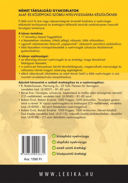 Ez a kiadvány elsÅ‘sorban az alapfokú "A" és a középfokú "A" tÃpusú nyelvvizsgára szeretne Önnek segÃtségére lenni. Könyvünk az alapfokú nyelvvizsga kiadott témaköreinek megfelelÅ‘en készült, de anyaga kiválóan felhasználható a középfokú nyelvvizsgákon is.