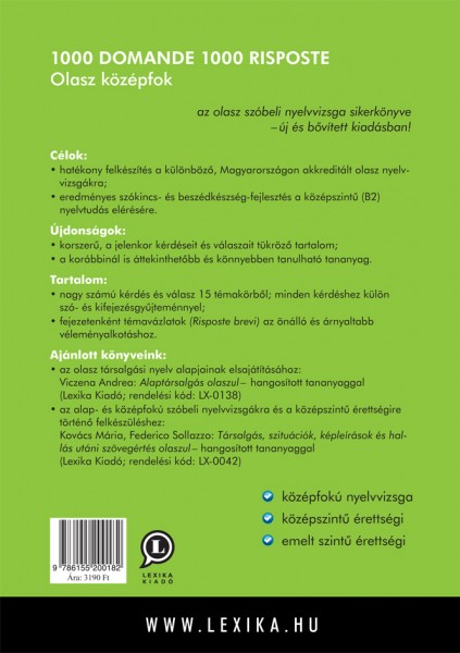 A felújÃtott kiadvány a mai kornak megfelelÅ‘ tematikus kérdéseivel és könnyen elsajátÃtható mintaválaszaival, szó- és kifejezésgyűjteményével a szóbeli középfokú nyelvvizsgára és a középszintű érettségire készÃt fel.