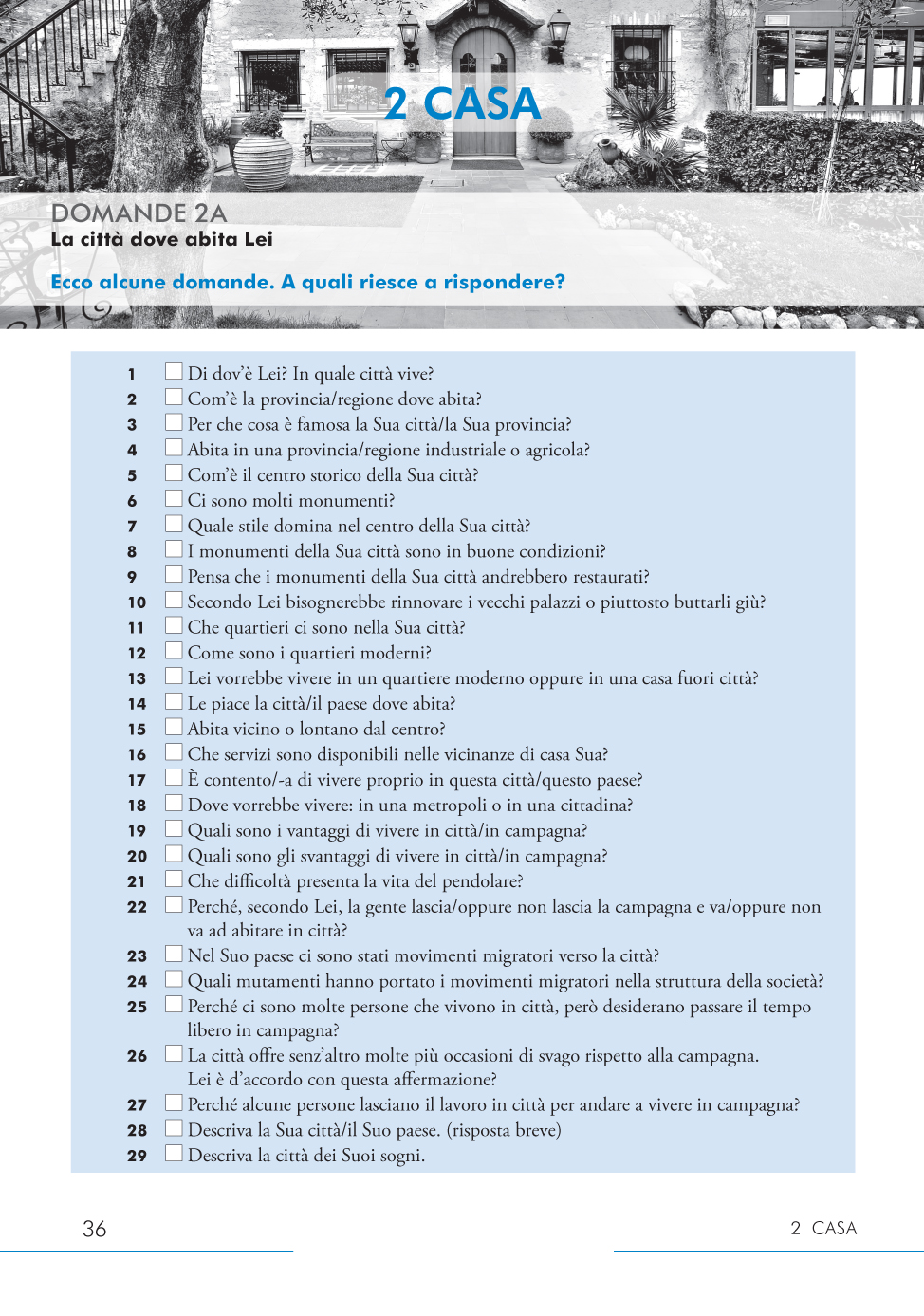 • nagy számú kérdés és válasz 15 témakörből; minden kérdéshez külön szó- és kifejezésgyűjteménnyel;