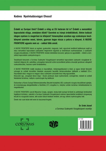 Érdekli az Európai Unió? Érdekli a világ az EU határain túl is? Érdekli a nemzetközi kapcsolatok világa, amelyben élünk? Szeretné ez irányú érdeklődését, illetve tudását idegen nyelven is megérteni és kifejezni? Amennyiben azonban egy szokványos tesztkönyvet szeretne venni, kérem, gyorsan tegye vissza a polcra e könyvet. A NUOVE FRONTIERE ugyanis nem az - sokkal több annál.