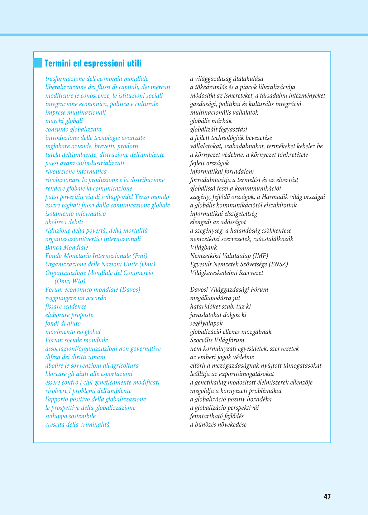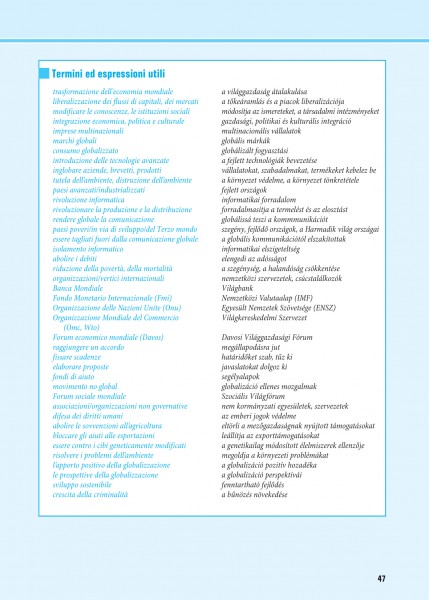 való hatékony felkészülésre, használatát olasz-magyar szószedet teszi még egyszerűbbé.