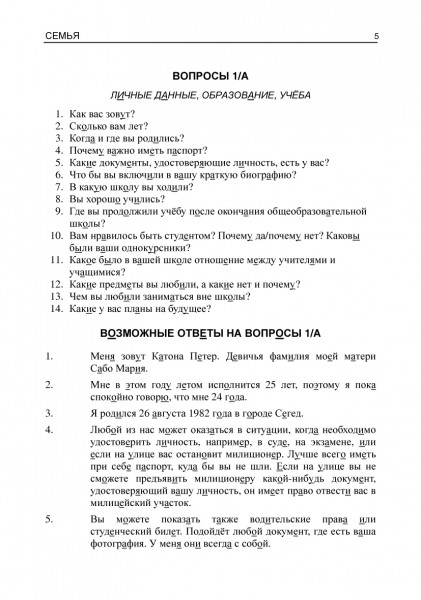 A könyv nehézség szerint csoportosÃtott tematikus kérdéseinek és válaszainak segÃtségével eredményesen sajátÃtható el a középfokú nyelvvizsga, illetve középszintű érettségi szóbeli részének nyelvi anyaga.