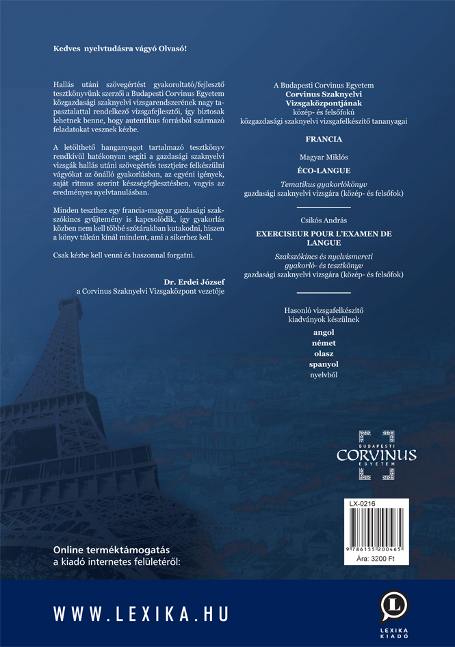 Hallás utáni szövegértést gyakoroltató/fejlesztÅ‘ tesztkönyvünk szerzÅ‘i a Budapesti CORVINUS Egyetem közgazdasági szaknyelvi vizsgarendszerének nagy tapasztalattal rendelkezÅ‘ vizsgafejlesztÅ‘i, Ãgy biztosak lehetnek benne, hogy autentikus forrásból származó feladatokat vesznek kézbe.