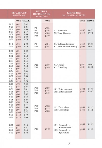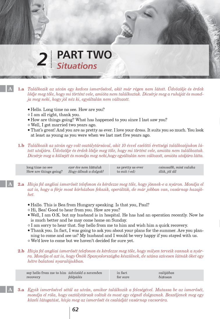 • nagy számú, korunk szükségleteihez igazodó társalgási és szituációs feladat;