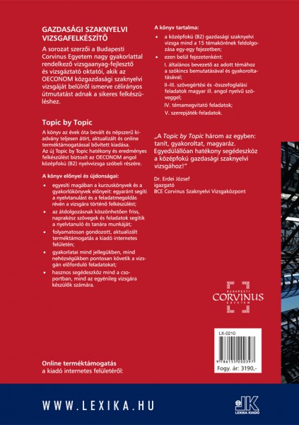 "A Topic by Topic három az egyben: tanÃt, gyakoroltat, magyaráz. Egyedülállóan hatékony segédeszköz a középfokú gazdasági szaknyelvi vizsgához!"