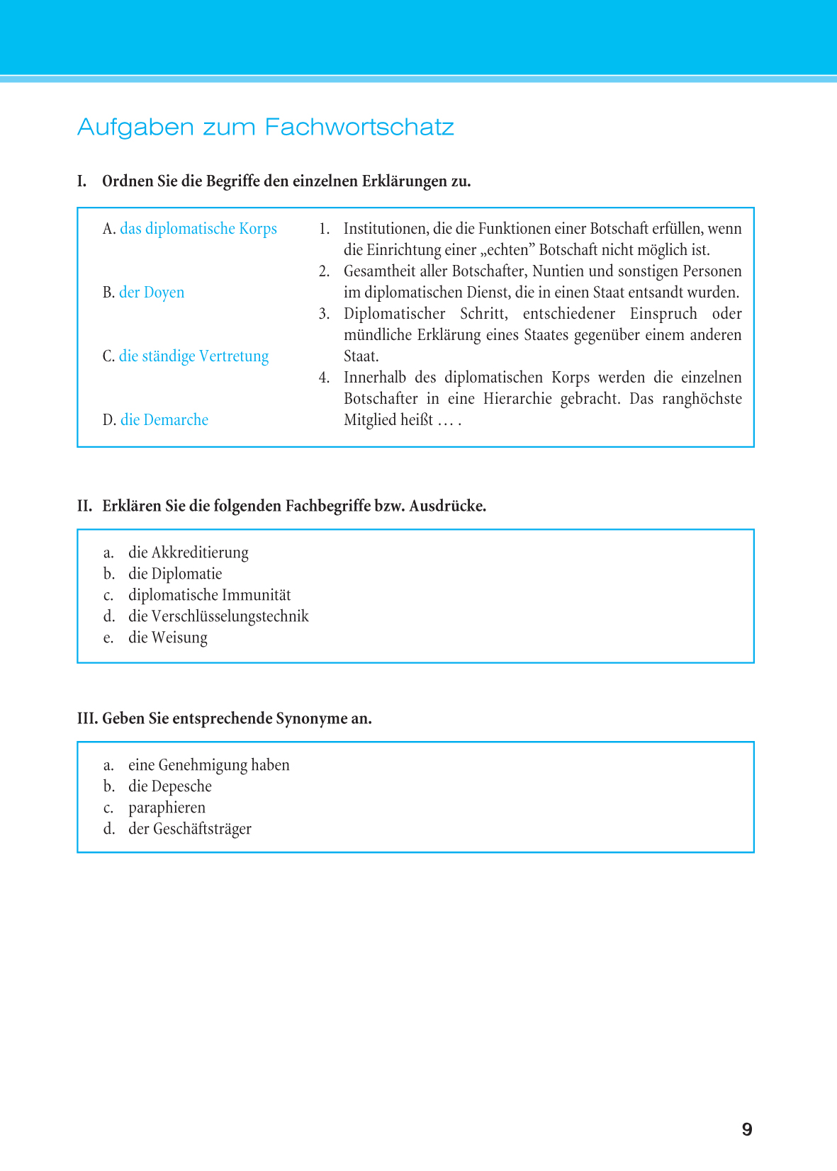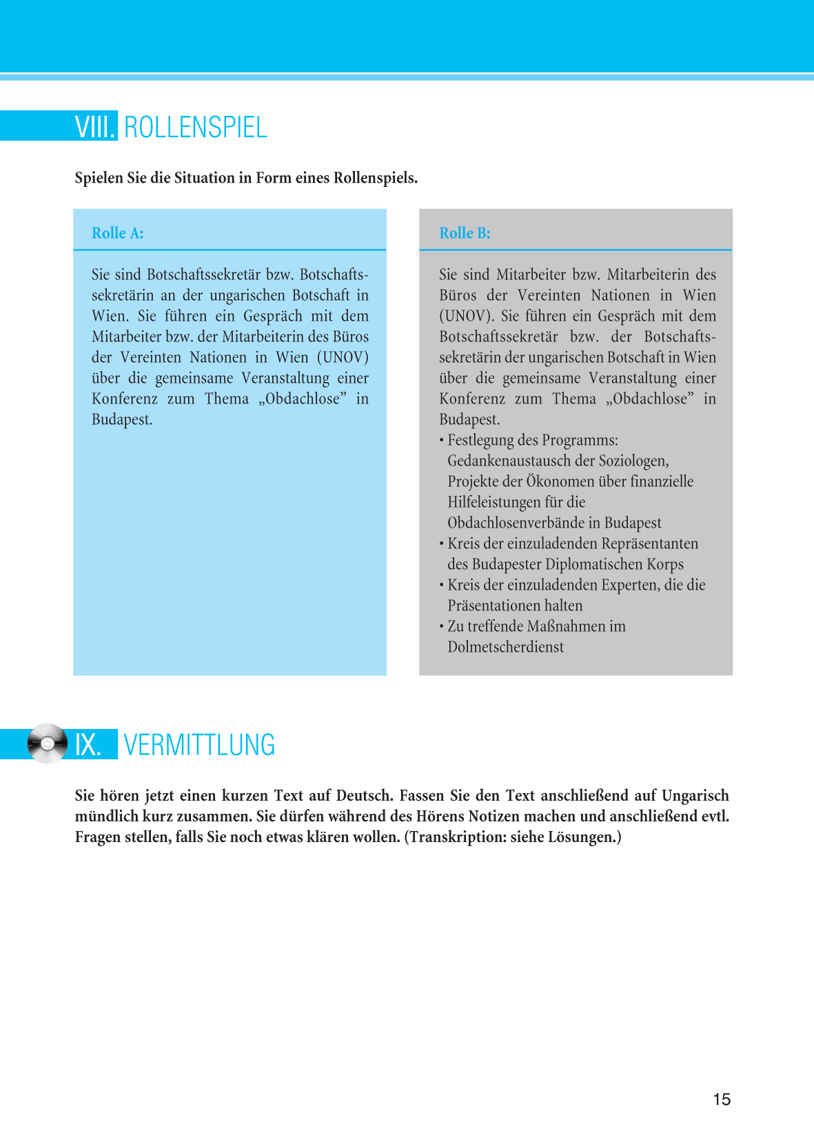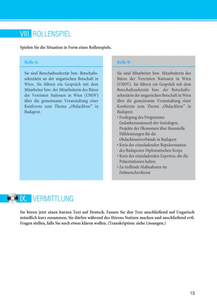 A WELTPASS önálló tanulásra is használható, mintamegoldásokat is kÃnál, az egyes témák felvezetÅ‘ szövegei és szóbeli közvetÃtési feladatok anyanyelvi beszélÅ‘k tolmácsolásában hallhatók a mellékelt CD-n. Használatát német-magyar és magyar-német szaknyelvi szószedet teszi még egyszerűbbé.